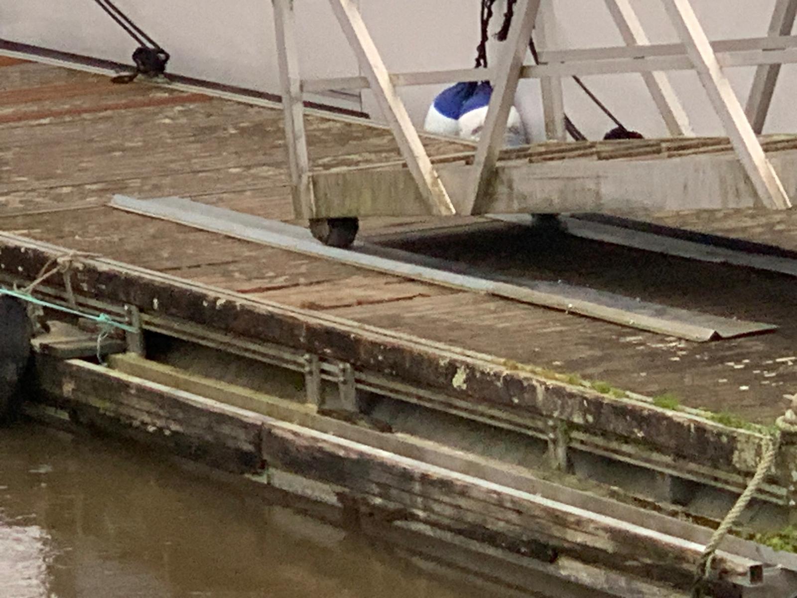 Os serralheiros do Município repuseram a corrediça metálica da plataforma da fluvina.