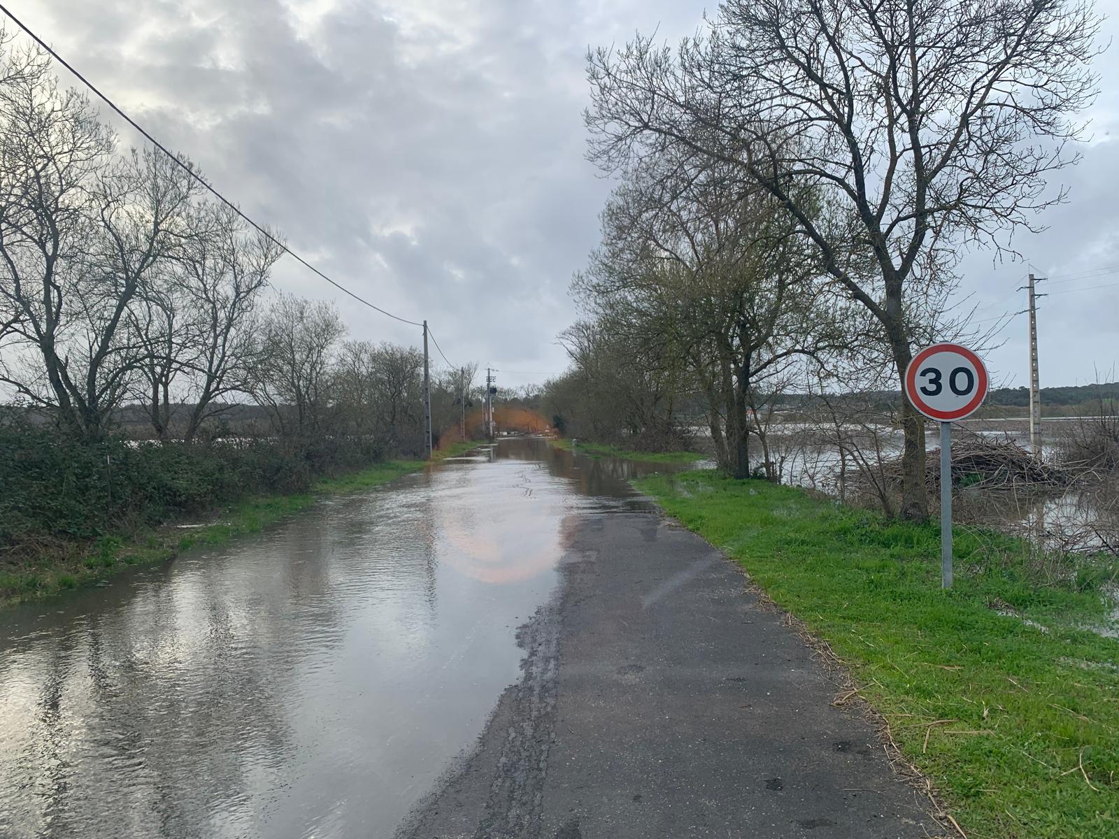 A EM-587 Valada-Vale Str continua submersa e interdita ao trânsito. O nível da água tem mantido a mesma altura desde a última madrugada. Cerca da quinta de Malpique existem pequenos lençóis de água de baixo nível.